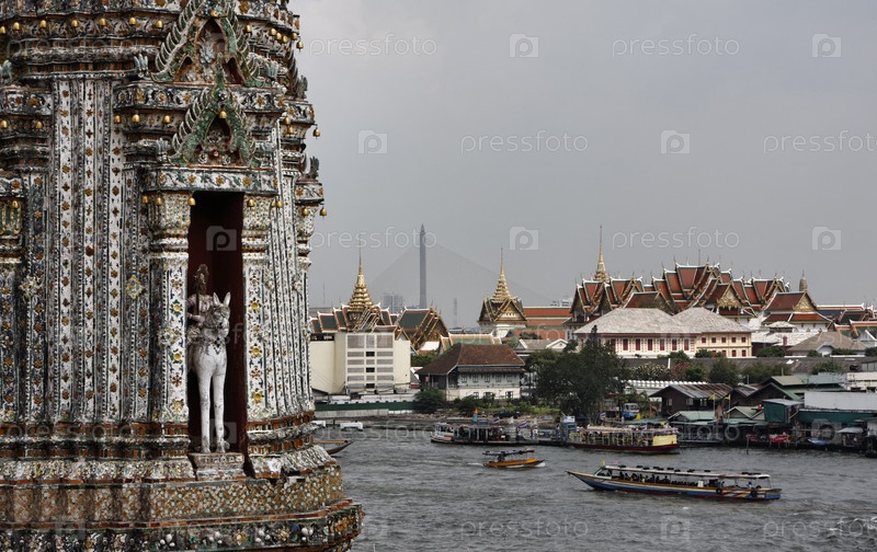 Таиланд, Бангкок, панорамный вид на реку Чао Прая и горизонт города, вид из храма Арун