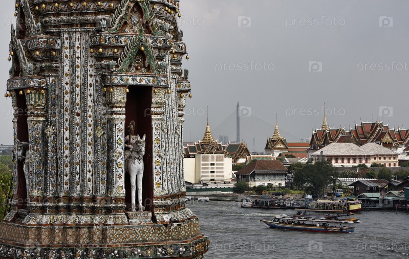 Таиланд, Бангкок, панорамный вид на реку Чао Прая и горизонт города, вид из храма Арун