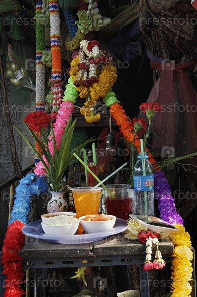 Таиланд, Бангкок, продукты питания и цветы у священного дерева