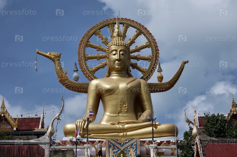 Таиланд, остров Самуи, буддийский храм Пхра Яй, золотая статуя Большого Будды высотой 12 метров