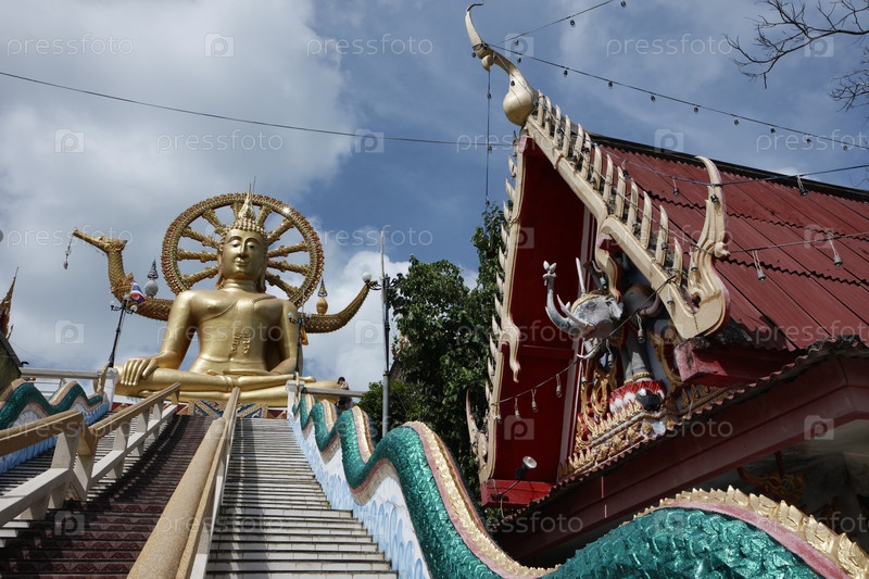 Таиланд, остров Самуи, буддийский храм Пхра Яй, золотая статуя Большого Будды высотой 12 метров
