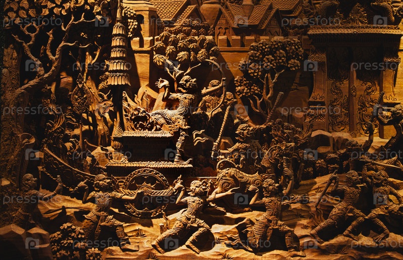 Таиланд, Бангкок, резная фреска из дерева