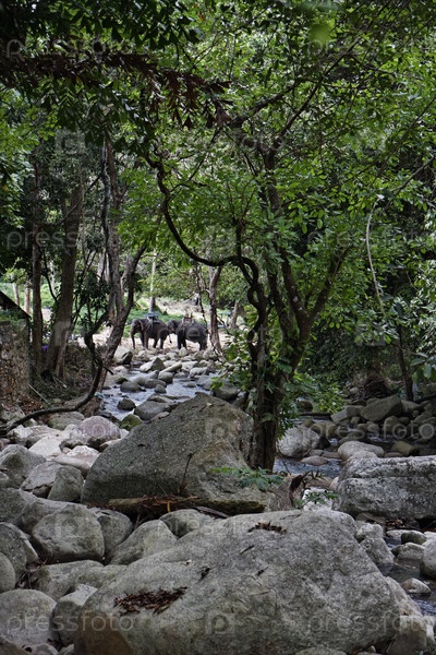Таиланд, остров Кох Самуи. Слоны на водопаде Намуанг