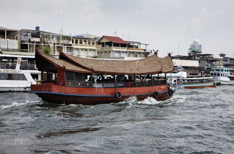 Таиланд, Бангкок. Вид на реку Чао Прая на фоне городского пейзажа