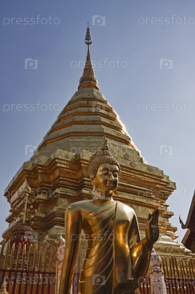Золотая статуя Будды в храме Пратхат Дой Кутхеп, Таиланд