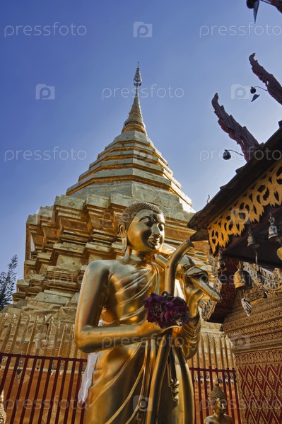 Таиланд, Чианг Май, храм Пратхат Дой Кутхеп (Ват Пратхат Дой Кутхеп).Золотая статуя Будды