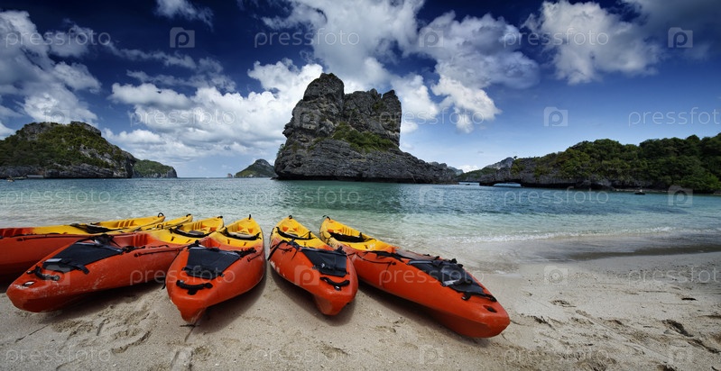 Таиланд, Национальный морской парк Му Кох Ангтхонг. Панорамный вид. Байдарки на пляже