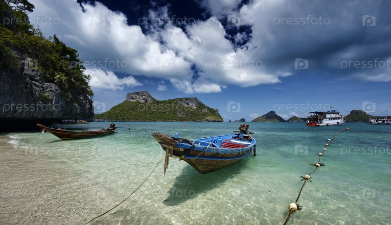 рыбацкая лодка на берегу национального морского парка, Таиланд