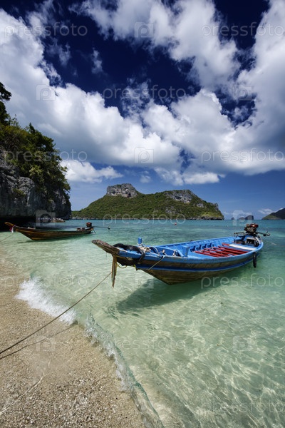 рыбацкая лодка на берегу национального морского парка, Таиланд