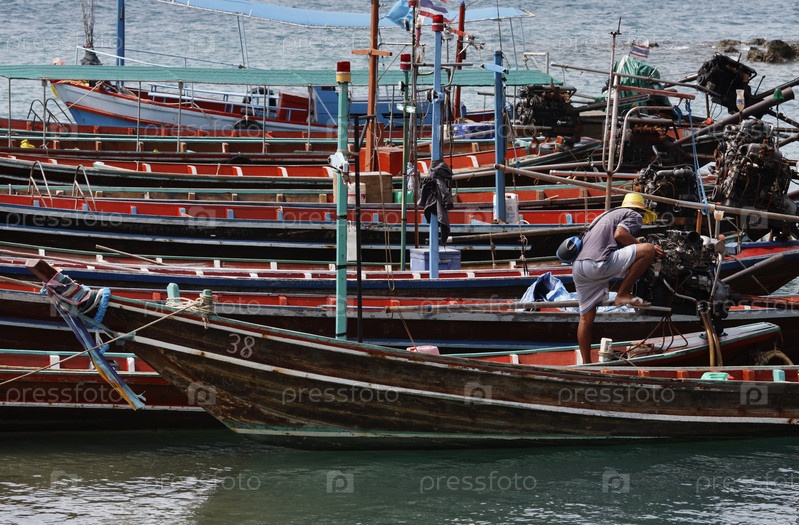 Таиланд, остров Панган, местные деревянные рыбацкие лодки на берегу