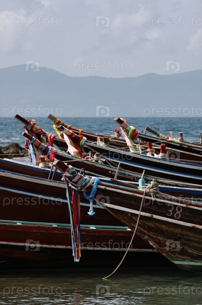 Деревянные рыбацкие лодки на берегу острова Ко Панган, Таиланд