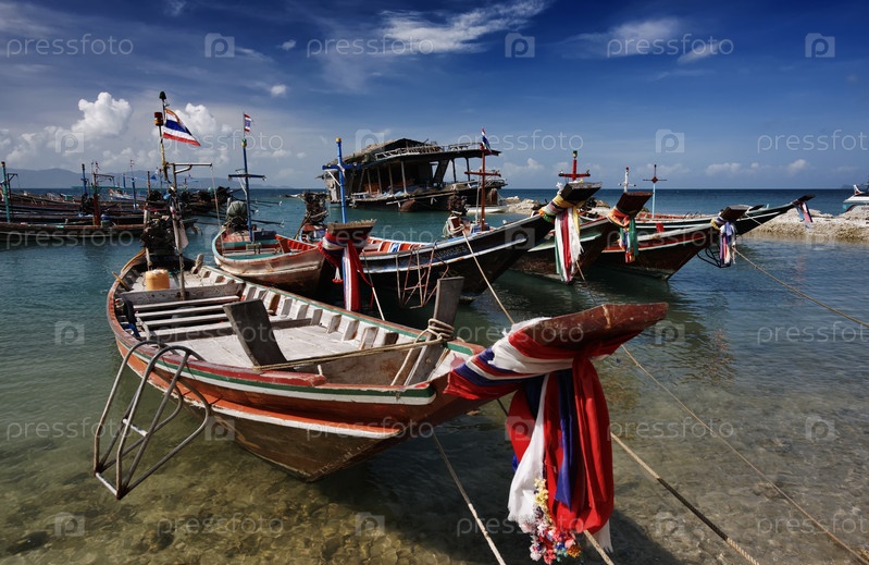 Деревянные рыбацкие лодки на берегу острова Ко Панган, Таиланд