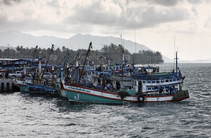 Таиланд, остров Панган, местные деревянные рыбацкие лодки на берегу