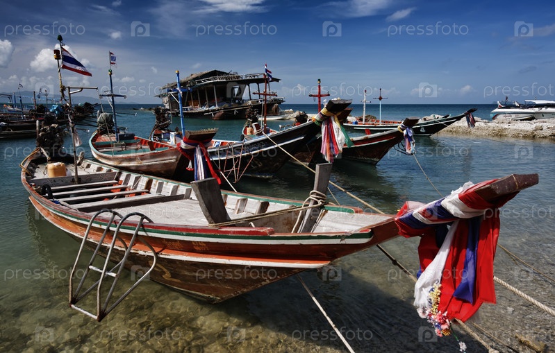 Деревянные рыбацкие лодки на берегу острова Ко Панган, Таиланд