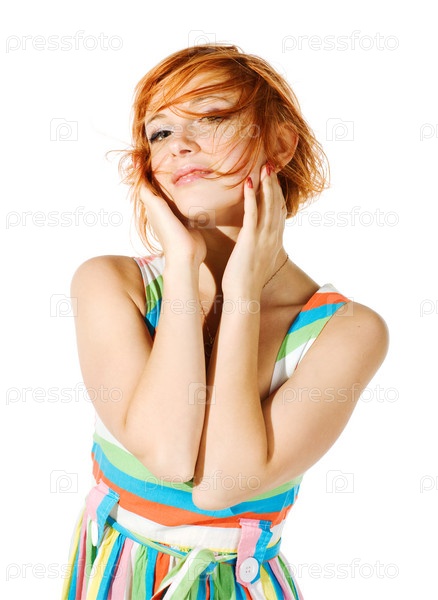 Красивая рыжеволосая девушка, изолированная на белом фоне