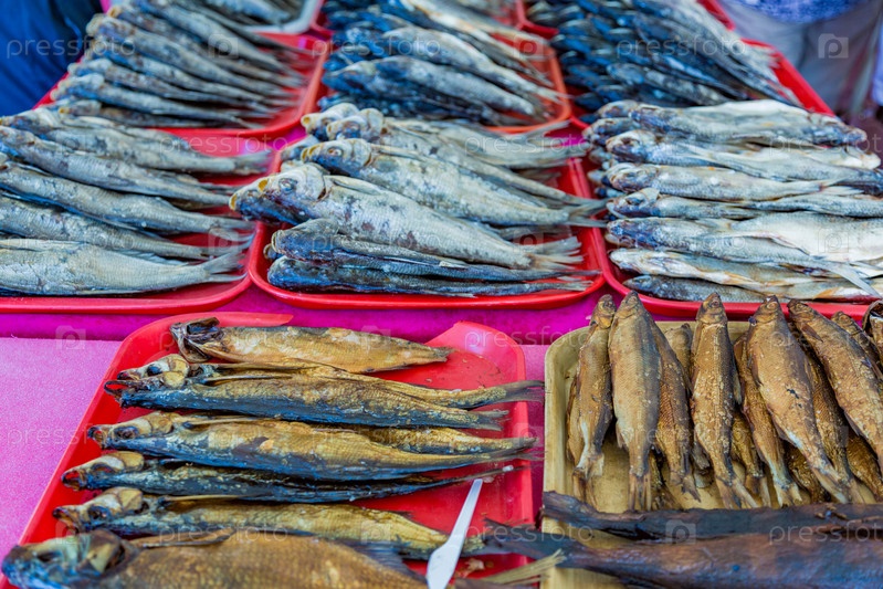 Ряды сушеной рыбы