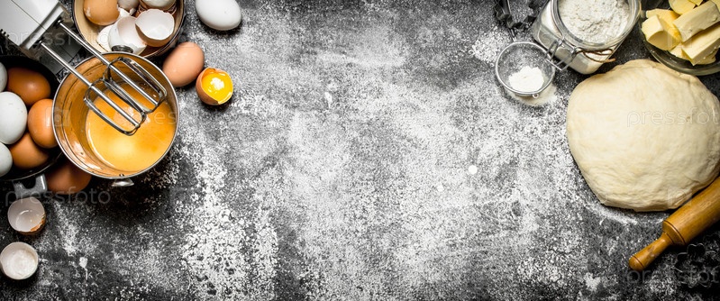 Тесто с миксером и различными ингредиентами