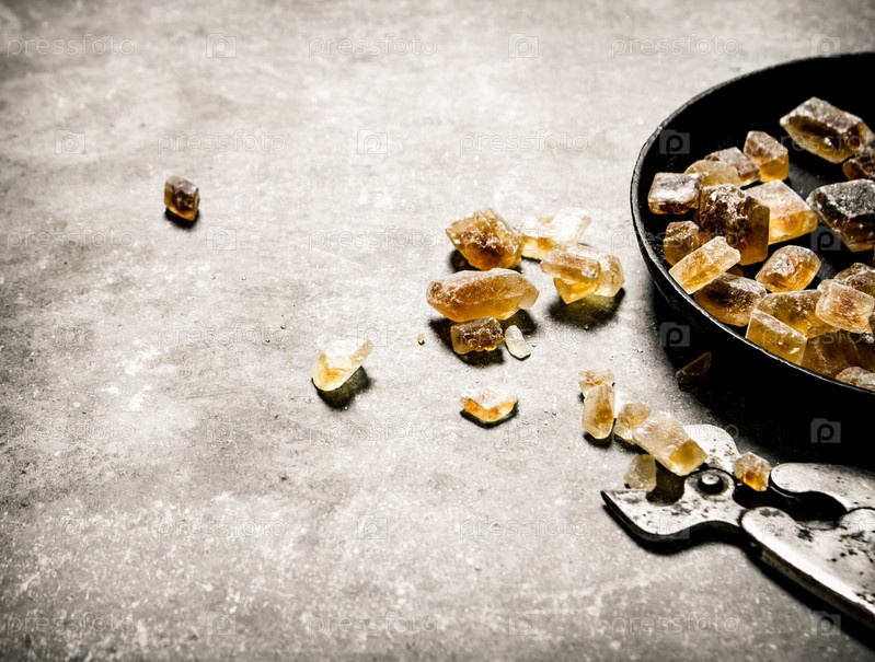 Темный кристаллический сахар с кусачками