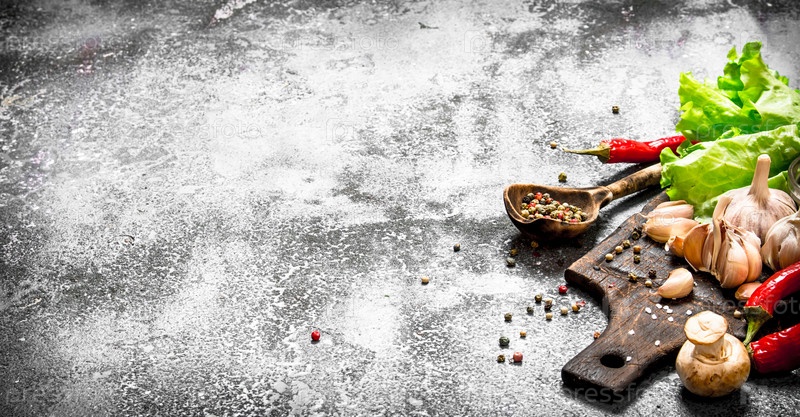 Свежие овощи со специями и травами
