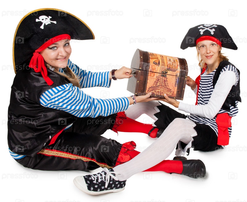 Веселые пираты на белом фоне
