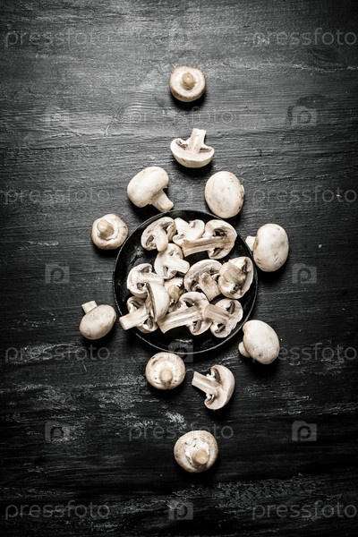 Нарезанные грибы в сковороде