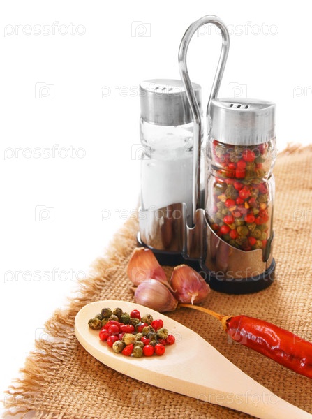 Перец, соль и чеснок на старой ткани