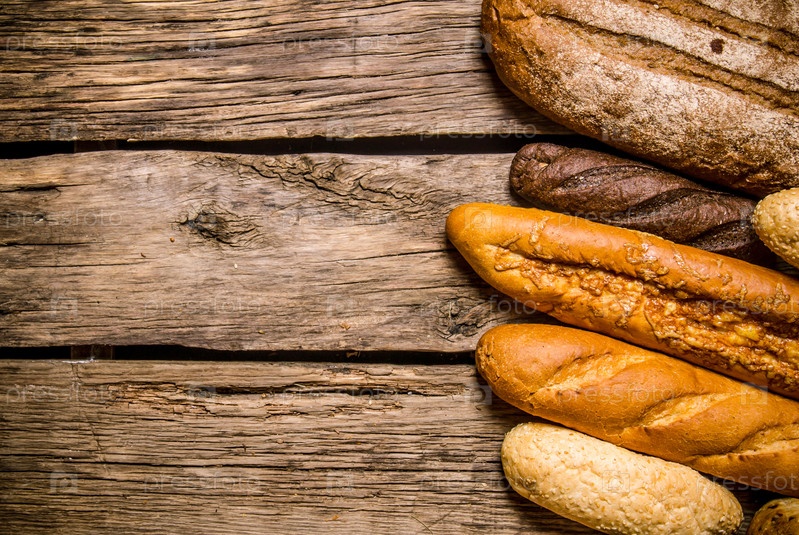 Хлебобулочные изделия на деревянном фоне