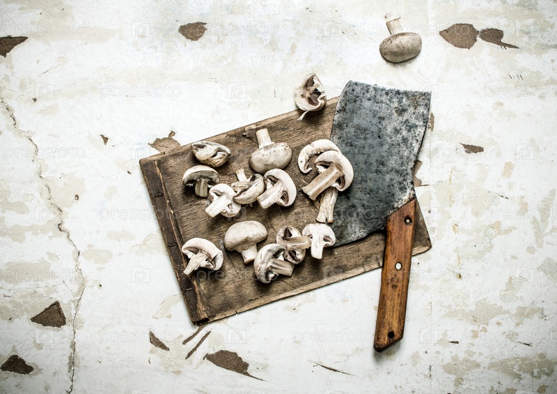 Свежие нарезанные грибы на доске