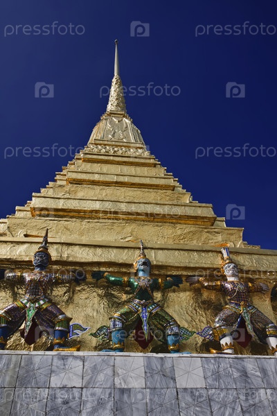 Золотые статуи на крыше храма, Тайланд