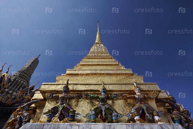 Золотые статуи на крыше храма, Тайланд