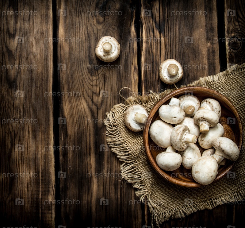 Свежие грибы в деревянныой чашке