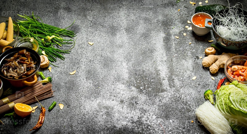 Разнообразие ингредиентов для приготовления китайской или тайской кухни
