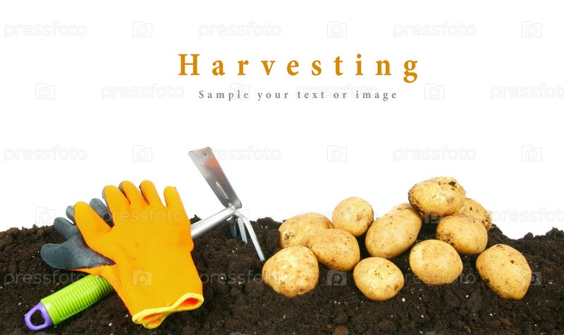 Сбор урожая. Картофель и садовые инструменты на земле
