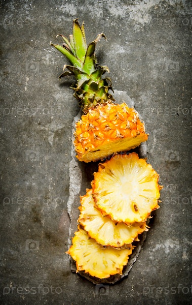 Свежий нарезанный ананас на каменной подставке