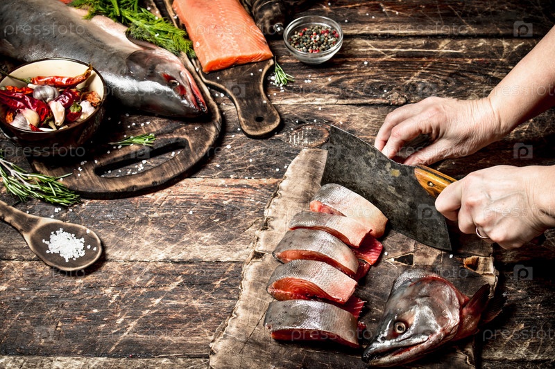Резка свежего лосося