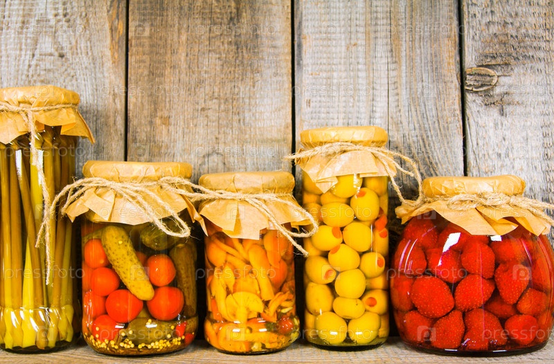 Консервированные овощи в стеклянных банках