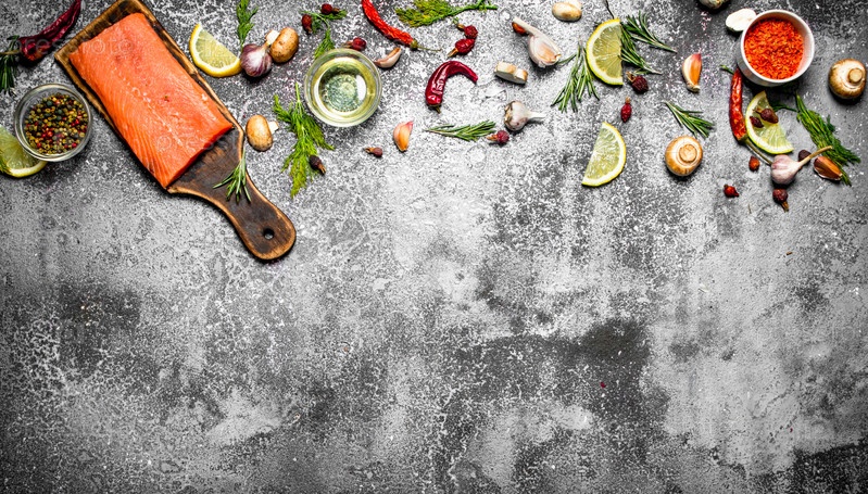 Свежее филе лосося с травами и специями