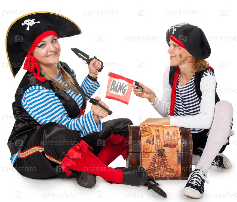 Веселые пираты на белом фоне