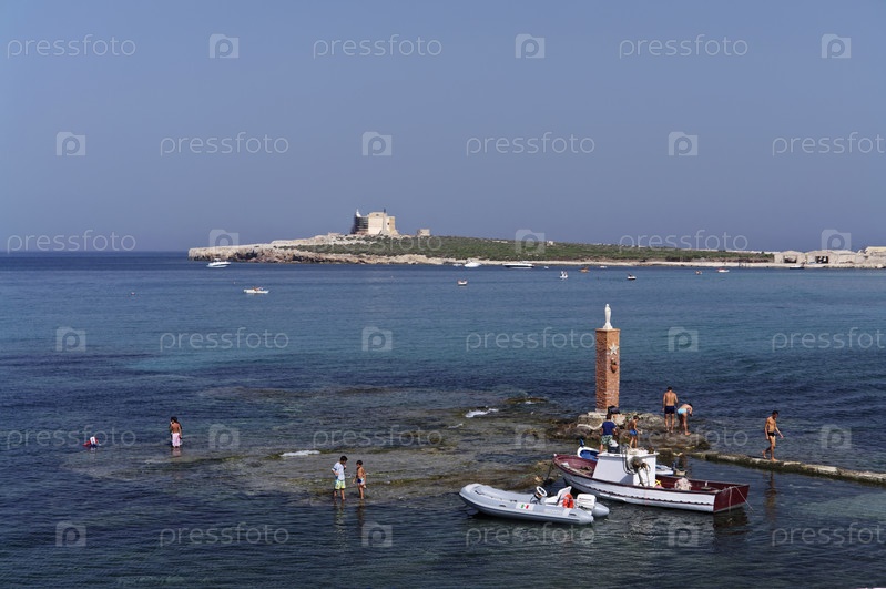 Италия, Сицилия, Портопало-ди-Капо-Пассеро, вид на побережье и остров Капо Пассеро