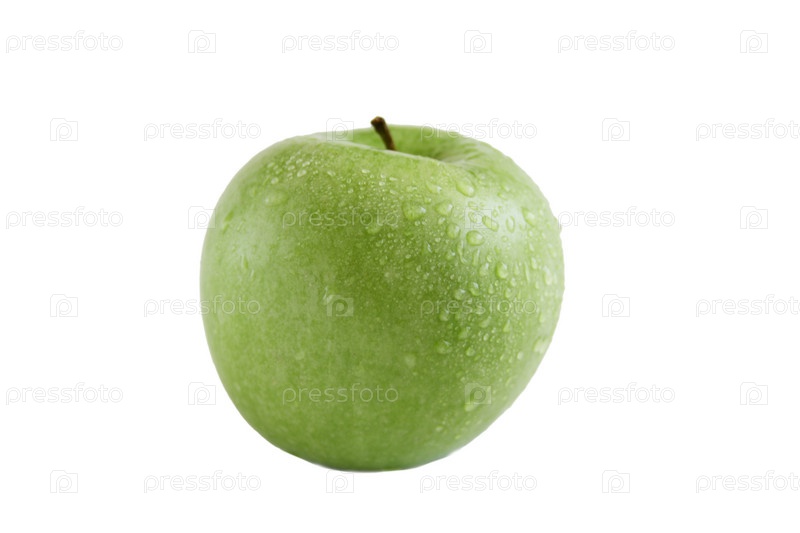 Зеленое яблоко на белом фоне