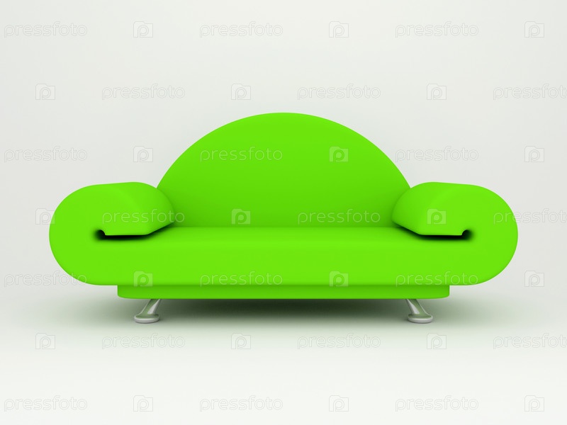 Зеленый диван на белом фоне