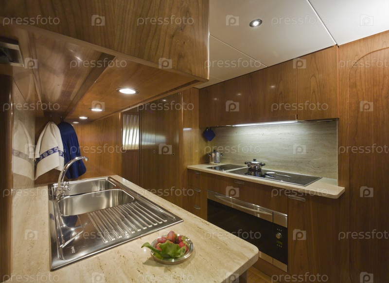 Италия, Рим. Интерьер кухни роскошной яхты Риццарди