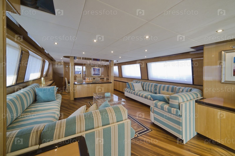 Италия, Тоскана, Виареджо, Текномар 35. Интерьер обеденной зоны на роскошной яхте