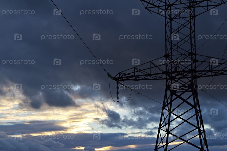 Линия электропередачи на фоне грозового неба
