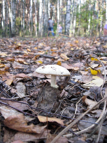 Несъедобный гриб поганка в лесу