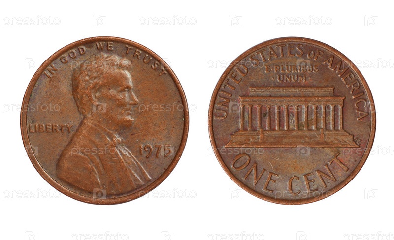 Старые монеты США на белом фоне