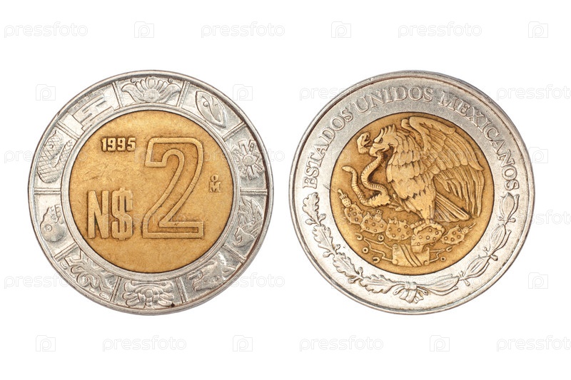 Монета Мексики на белом фоне