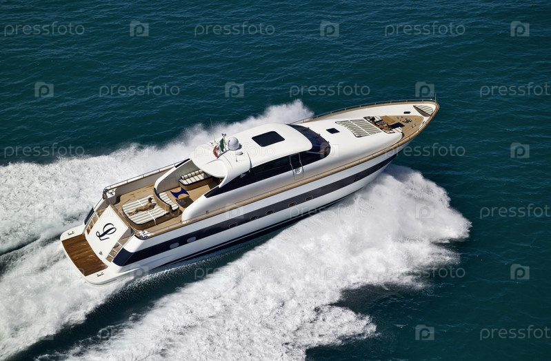Италия, Тирренское море, побережье Виареджио (Тоскана), роскошная яхта Техномар 26, вид сверху