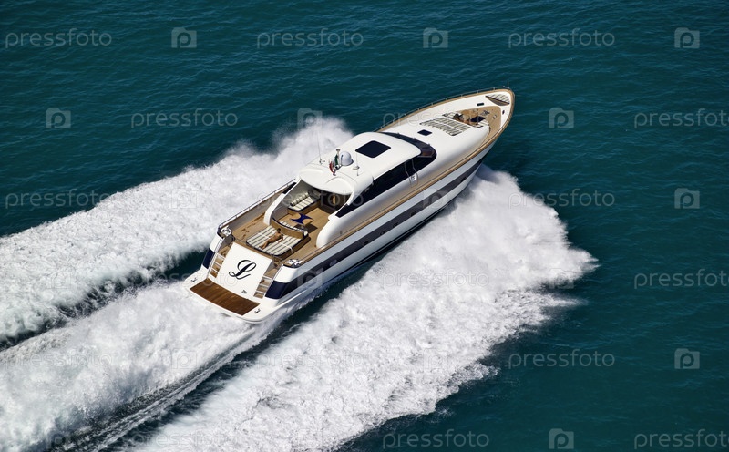 Италия, Тирренское море, побережье Виареджио (Тоскана), роскошная яхта Техномар 26, вид сверху
