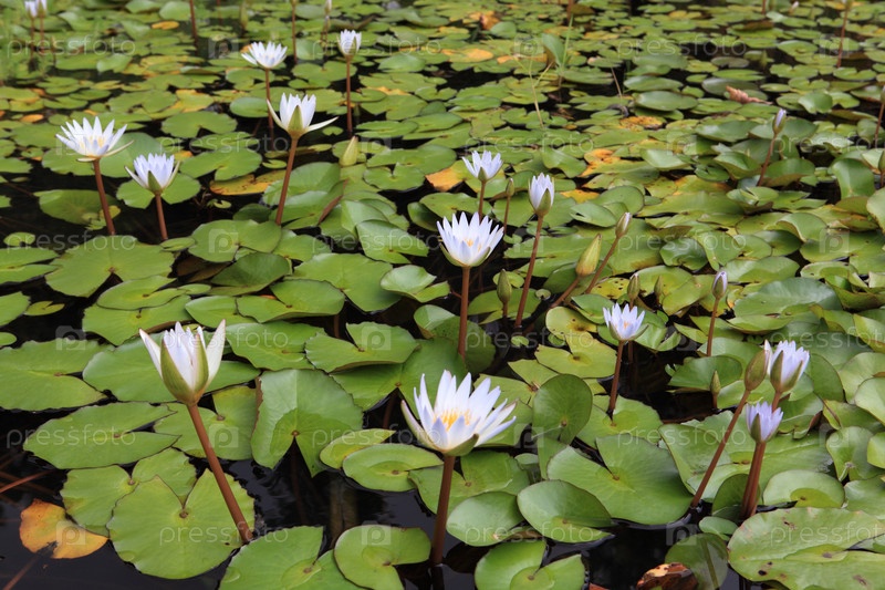 Цветущие лилии посреди водоема